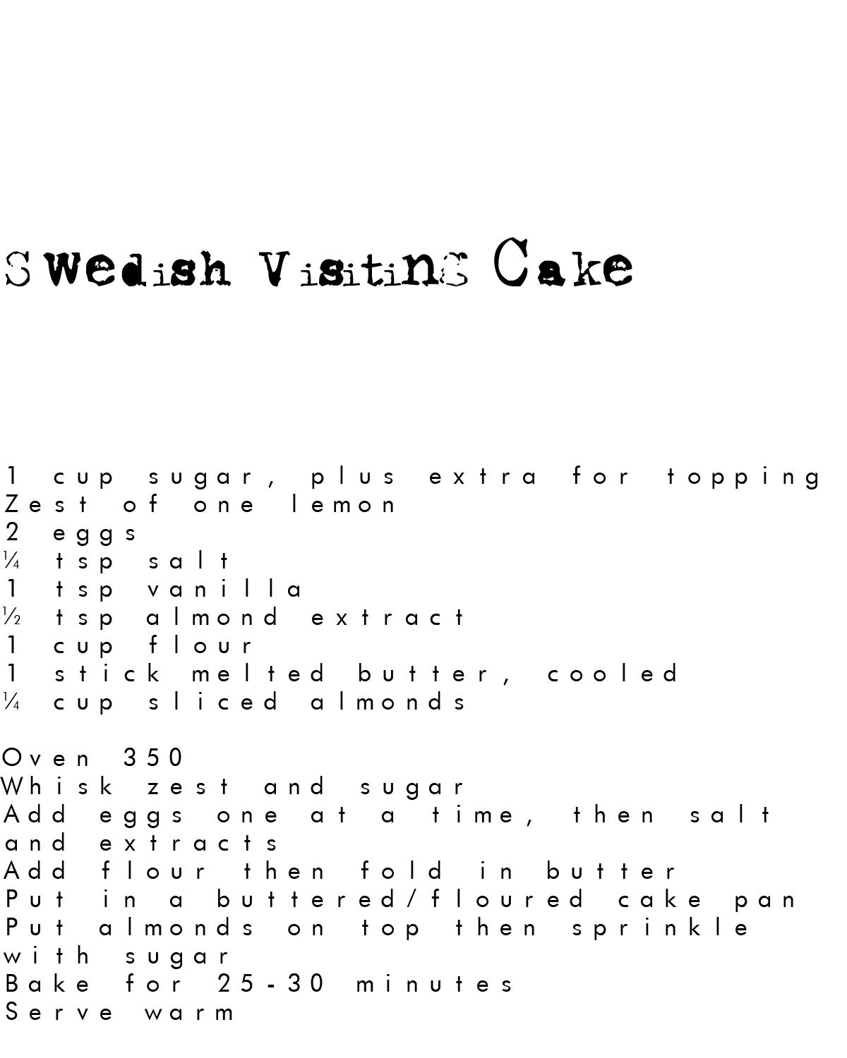 I'm not Swedish and I'm not visiting anywhere. So it's lemon almond cake, but Swedish Visiting Cake sounds so much nicer.